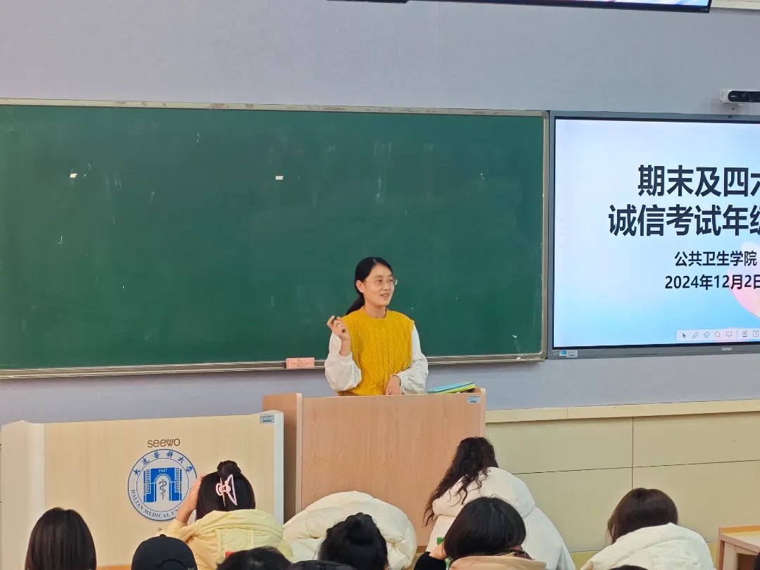 为进一步加强学院学风建设,引导学生树立诚信应考的价值观,营造良好的考试氛围,beat365中文官方网站于12月2日在A205教室召开期末及四六级诚信考试年级大会,两位辅导员老师及全体在校生参加了此次大会。