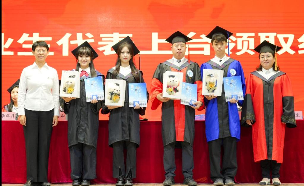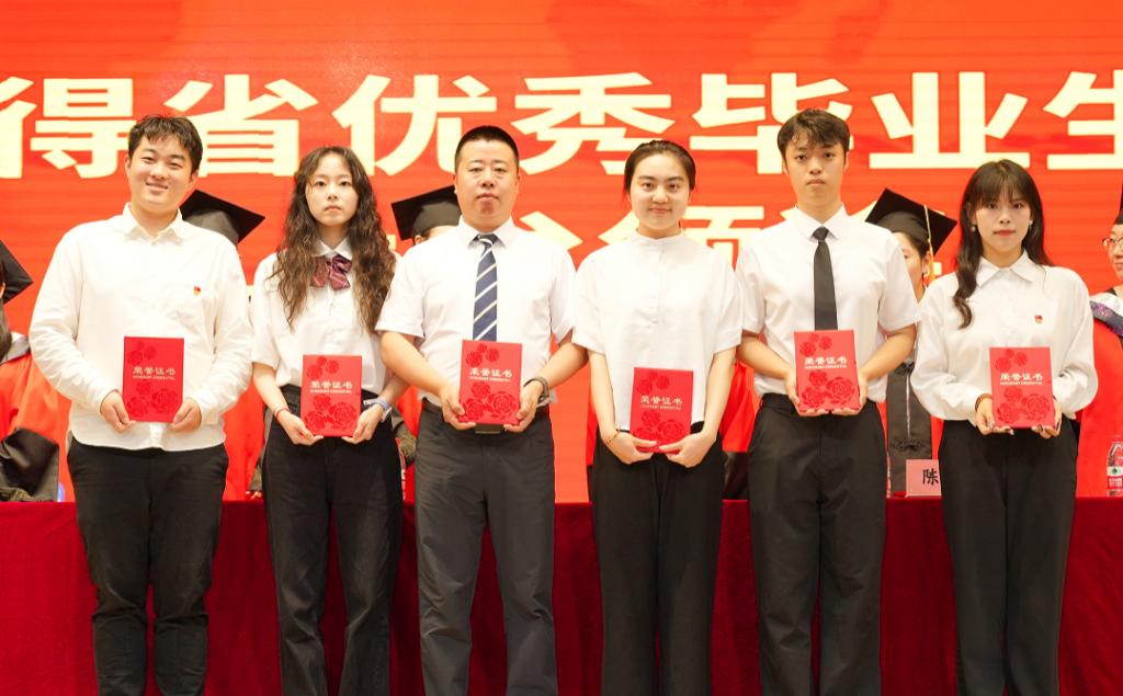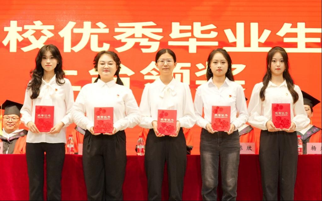 学院领导为2025届省、市、校优秀毕业生代表颁奖。