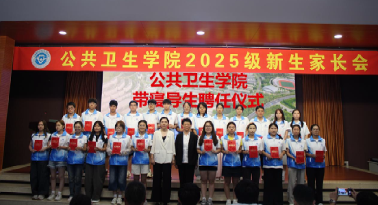 会上还举行了带寝导生聘任仪式和军训教官见面会。金新和陈欣为2025级全体带寝导生颁发聘书,充分体现学院对带寝导生的支持与肯定。