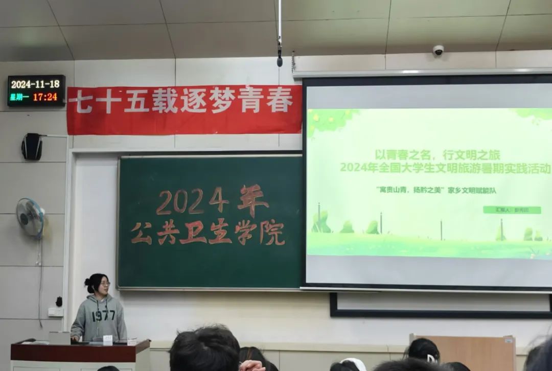 为培养同学们的社会责任感和担当意识,进一步将个人能力与社会需要紧密结合。beat365中文官方网站于2024年11月18日举办“七十五载逐梦青春,万千跬步践悟征程”2024年暑期社会实践成果展活动。两位辅导员老师,学院学生会各部门负责人及beat365中文官方网站2023、2024级全体同学参加了本次活动。