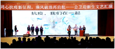 随后,学院举办了“同心抗疫新征程•乘风破浪再起航”主题迎新晚会,同学们通过《抗疫,我们在一起》情景剧、《最美的温暖》合唱等文艺节目致敬战疫英雄,展示青年一代不怕苦、不畏难、不惧牺牲,勇担重担的赤子底色。