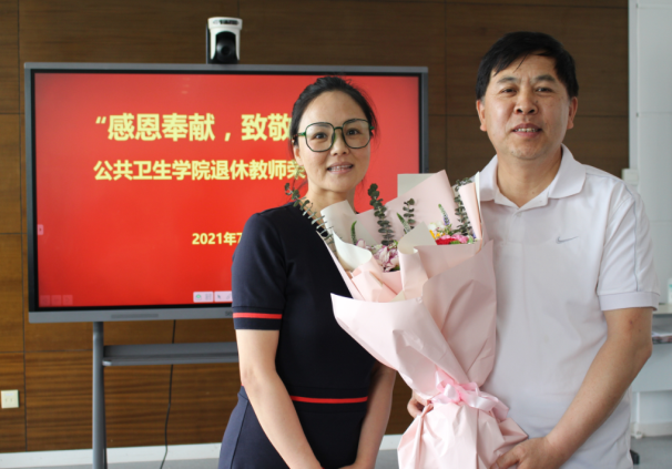 两位受邀教师发表感言,回顾了和学院共同成长,荣辱与共的点滴经历,对学院领导班子的肯定和关怀表示感谢,对年轻教师提出了殷切希望并表示即便退休也心系学院发展。随后,两名受邀教师接受所在教研室教师代表献花。