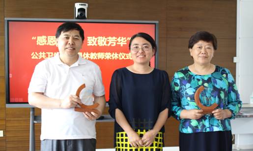 院长孙鲜策代表学院向两位受邀老教师颁发纪念品。同时,她代表学院向退休教师送上美好祝福,她指出学院发展离不开一代代人的辛勤付出,作为学院的中坚力量,目前还在岗位上奋斗的老师们要肩负好上一代人赋予的历史使命,承上启下做好学院各项工作。