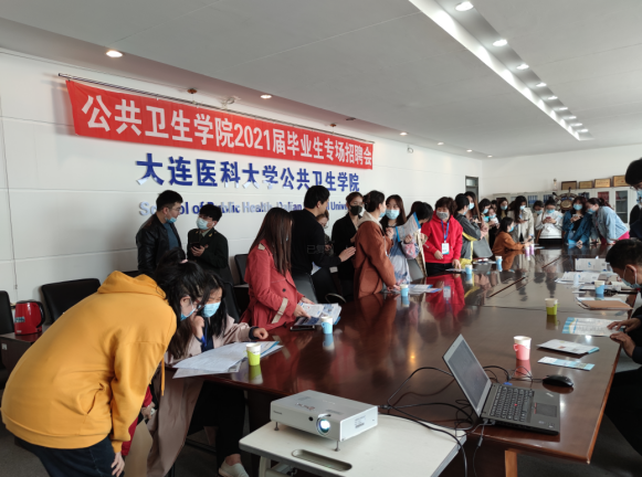 会议伊始,孙鲜策院长介绍了学院的师资力量和整体情况,说明了预防医学与公共事业管理的专业特点和就业优势。随后,各用人单位分别通过视频展示、PPT讲解、面对面交流的方式,详细介绍了其单位的发展方向、地理位置、薪资待遇、成长潜力和岗位需求等相关信息,极大的激发了同学们的就业意愿。在后续的自由交流环节,同学们纷纷与自己感兴趣的用人单位进行了一对一的深入交流,并递交了精心准备的求职简历,现场时而爆发出欢快的笑声,本次专场招聘会也在热烈的现场氛围中圆满结束。
