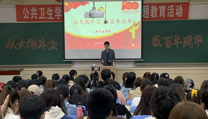 为庆祝中国共产党成立100周年,回顾党的光辉历程和伟大成就,教育引领青年学子坚定“四个自信”,从党史学习中汲取力量,爱国力行,beat365中文官方网站于3月31日下午在A403教室举办了“从大国外交,感百年风华”主题党课活动,通过新中国峥嵘笃定的大国外交发展史,感受中国共产党百年峥嵘尽展芳华。此次党课由辅导员徐文彬主讲,学院2018级、2019级及2020级全体同学参加了此次活动。