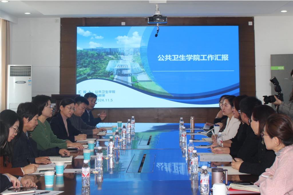 刘莹实地考察了beat365中文官方网站教研室、科研实验室。随后,组织召开座谈会,听取学院发展历史,师资队伍、教育教学、科学研究、人才培养等方面建设现状的汇报,重点了解了学院学科建设、社会服务以及中美合作MPH项目情况。
