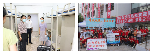 学院党总支书记姜平与院长孙献策也来到迎新处详细询问迎新人员安排、接待程序、后勤保障、入住引导、物品配备等方面的准备情况,亲切慰问了现场参与迎新工作的同学,并一同走访了新生寝室,与新生及家长进行了亲切的沟通交流,对大家的到来表示欢迎,鼓励新生同学自立自强、勤奋努力,调整好心态,尽快适应大学生活。