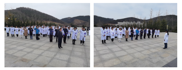 参观学习结束后,大家来到烈士纪念碑前,由姜平书记带领全体师生重温入党誓词,在革命先烈精神的激励下,进一步坚定了理想信念和为人民服务的宗旨观念。接下来,众人面向纪念碑肃立默哀一分钟,向烈士们表达崇敬和悼念。随后,大家依次上前为烈士们献上鲜花,愿英雄们永垂不朽,并向烈士们三鞠躬,再一次表达我们对英雄烈士们最崇高的敬意。