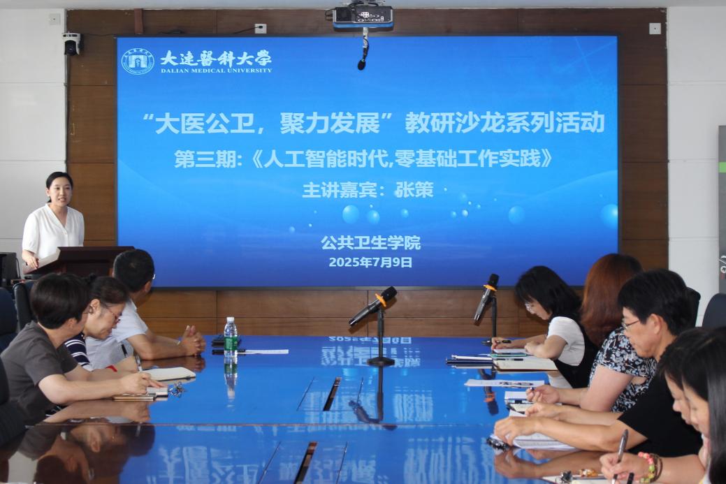 为了扩展教研视角、融合创新思路,进一步提升beat365中文官方网站教师教学和科研水平,7月9日下午,beat365中文官方网站在424会议室举办了第三期“大医公卫·聚力发展”教研沙龙系列活动。本次活动邀请beat365中文官方网站附属二院党政办主任张策作人工智能培训讲座。院长孙鲜策、党总支书记兼副院长金新、副院长陈欣及学院全体教师参加,活动由陈欣主持。