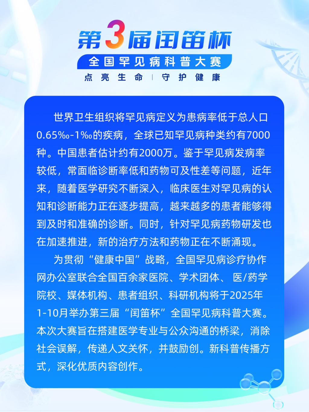 参与“闰笛杯”全国罕见病科普大赛,不仅仅是一次比赛,更是医者点亮希望、传递温暖的责任与使命!