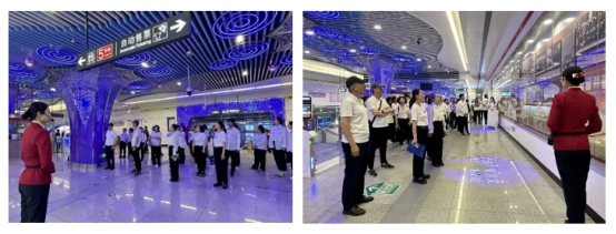 参观结束后,一场庄严而神圣的入党誓词重温仪式在地铁外广场举行。面对鲜红的党旗,全体党员干部庄严肃立,紧握右拳,重温入党誓词。“我志愿加入中国共产党,拥护党的纲领,遵守党的章程……”在庄重的氛围中,党员们发出铮铮誓言,展现了他们坚守初心、矢志不渝的决心。每一个字都充满了力量,铿锵有力,彰显了他们永葆清正廉洁政治本色的坚定信念。